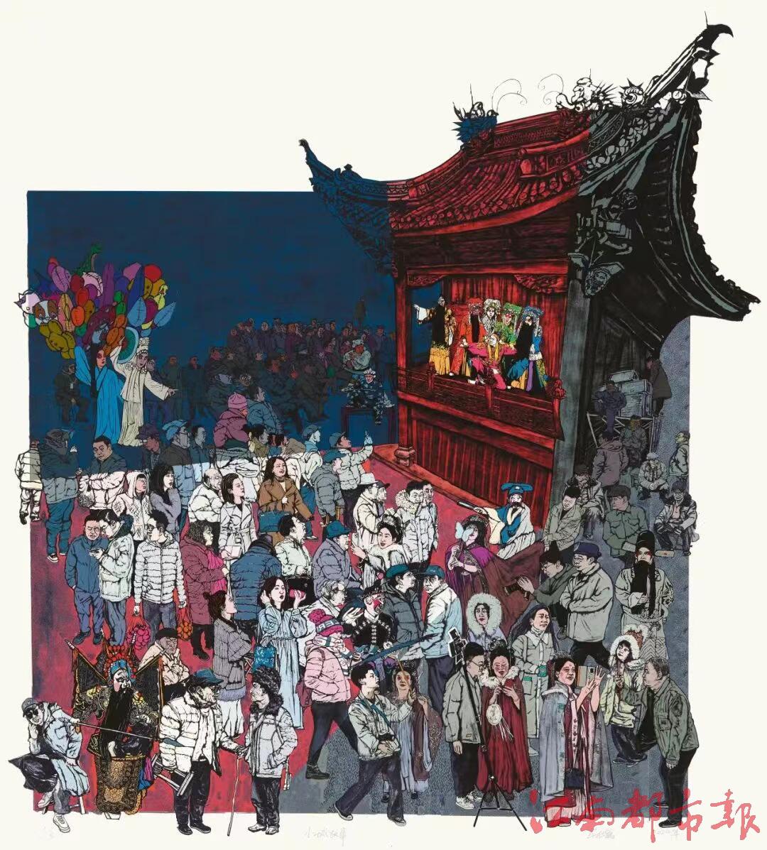“青春飛揚(yáng)”采用推薦與評審結(jié)合的方式,即由專家提名作者、作者自選作品、專家評審定展——賦予參展作品鮮明的價值特性。它不僅保障了創(chuàng)作者的自主性和創(chuàng)作過程的偶然性,也確保了作品的當(dāng)下性與時效性。青年藝術(shù)家的視角,使他們在探索個人藝術(shù)語言的同時,自覺融入了對現(xiàn)實生活的深切觀照,清晰折射出本年度中國版畫創(chuàng)作的多元風(fēng)貌。展品題材廣泛,既有對城市化進(jìn)程、鄉(xiāng)村振興等社會現(xiàn)實的關(guān)注與描繪,也包含對中國傳統(tǒng)文化元素的當(dāng)代轉(zhuǎn)化與表達(dá),更不乏對個體生存狀態(tài)及哲學(xué)命題的深刻思考。展覽旨在通過精品展示、學(xué)術(shù)梳理、作品收藏及國內(nèi)外巡展交流等形式,全方位呈現(xiàn)中國當(dāng)代青年版畫創(chuàng)作的最新成果、前沿探索與審美追求。回望中國版畫發(fā)展歷程,青年始終是革新的核心驅(qū)動力。他們握刀的手所承載的信念,既是對傳統(tǒng)的重鑄,亦是對未來的啟明。本次展覽為青年藝術(shù)家搭建了展示才華的舞臺,鼓勵他們在創(chuàng)作中釋放個性、探索版畫藝術(shù)的邊界;更激勵他們以蓬勃的朝氣關(guān)注時代與生活,銳意創(chuàng)新,求新求變。本次展覽由中國文化藝術(shù)發(fā)展促進(jìn)會、江蘇省文化投資管理集團(tuán)、江西省美術(shù)館聯(lián)合主辦,中國文化藝術(shù)發(fā)展促進(jìn)會版畫院、江蘇藝術(shù)中心、江蘇大劇院、江蘇大劇院藝術(shù)基金會共同承辦。