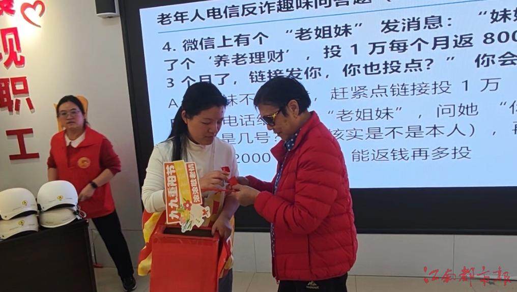 “不輕信、不轉(zhuǎn)賬,守好錢袋子!”在八月湖街道豐源淳和社區(qū),一場(chǎng)“重陽(yáng)送暖送安全”有獎(jiǎng)知識(shí)競(jìng)答氣氛熱烈,老人們爭(zhēng)相搶答防騙、防火、防集資題目,在歡笑中學(xué)習(xí)安全知識(shí)。